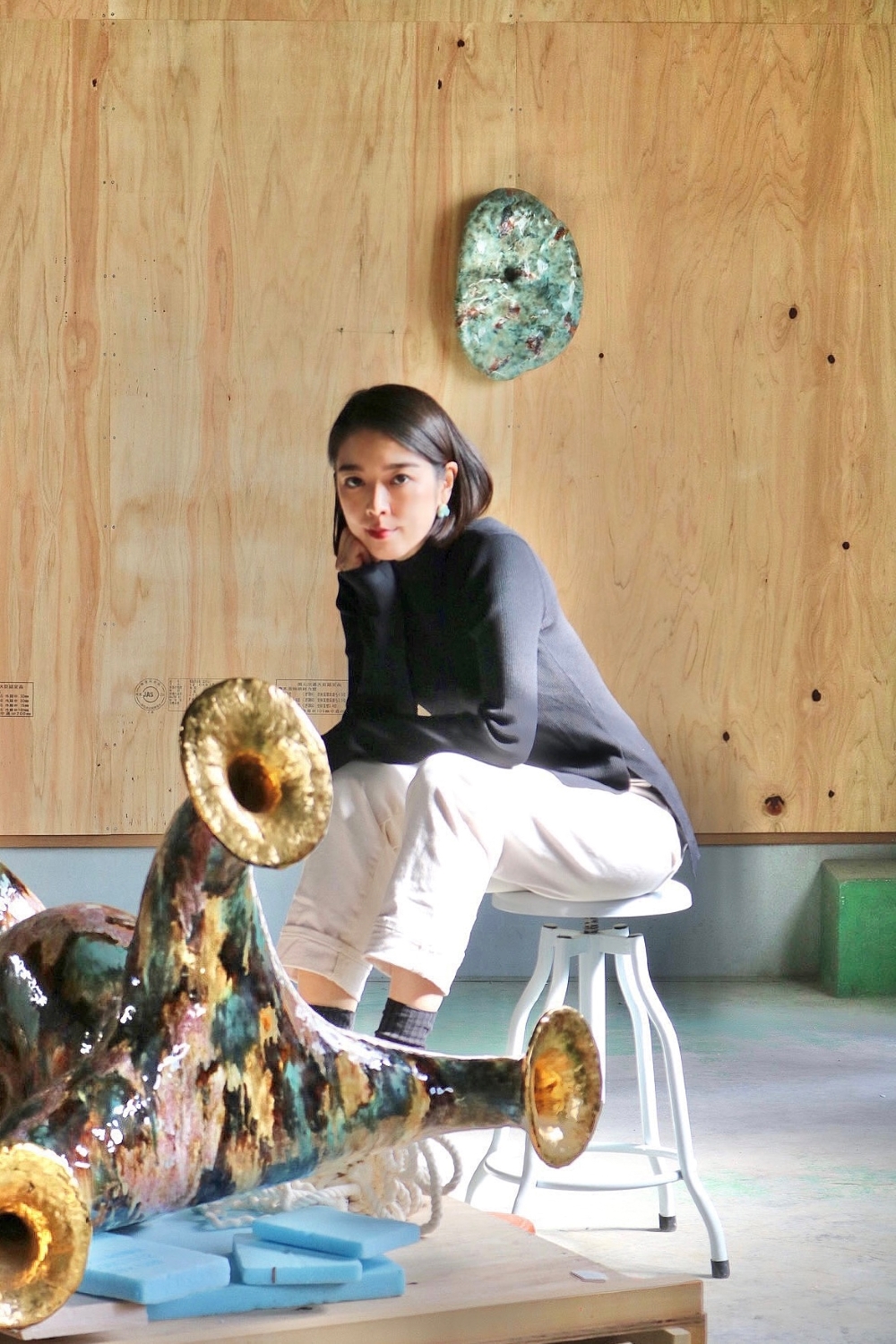 Saijo Akane (b. 1989, Hyogo, Japan) Lives and works in Kyoto. She completed her Master’s degree in Ceramics at the Graduate School of Arts, Kyoto City University of Arts in 2014. She studied abroad at the Royal College of Art in London in 2013. She was admitted to the FY2020 Kyoto City Special Bounty Program for Art and Culture. The keyword of Saijo’s work is “corporeal presence,” inspired by the characteristics of ceramics, namely, their smooth exteriors and hollow interiors. She creates ceramic works and presents sound performances by breathing and voicing into their hollow spaces. Saijo also visits kilns around the world, producing works based on local legends and histories.