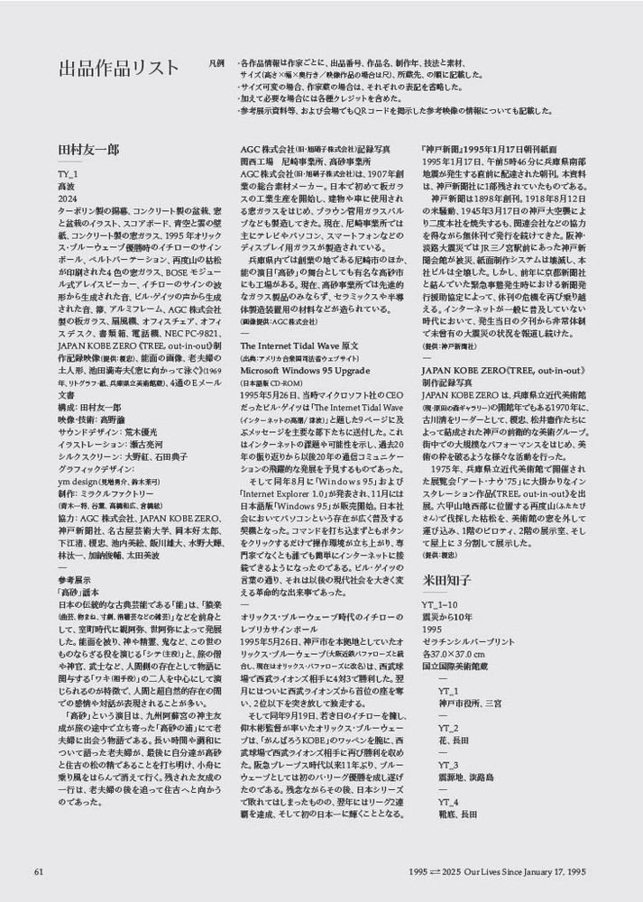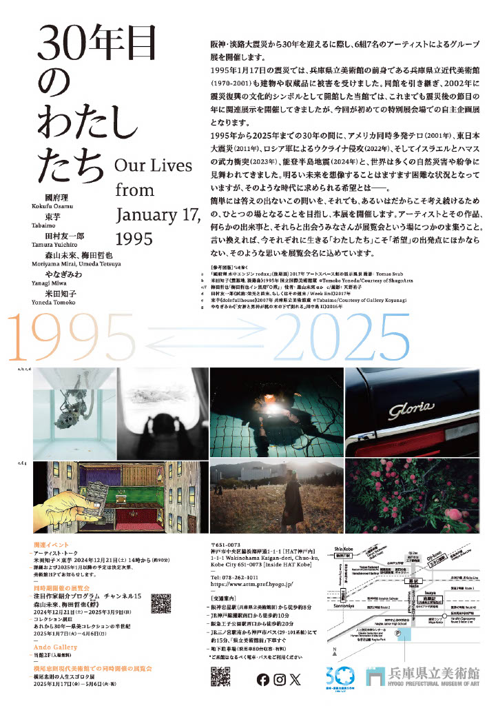 1995年1月17日的那场地震,使兵库县美术馆的前身——兵库县当代美术馆(1970-2001)美术馆本身和收藏品都受到的不同程度的损坏。而之后建立的美术馆象征着“灾后的复兴”,作为振兴的文化符号,于2002年再次开馆。迄今为止每到震后的整数年之际都会举办相关展览,此次也不例外。作为首次特别展的会场举办了此次自主企划展。