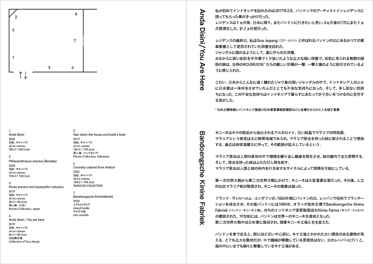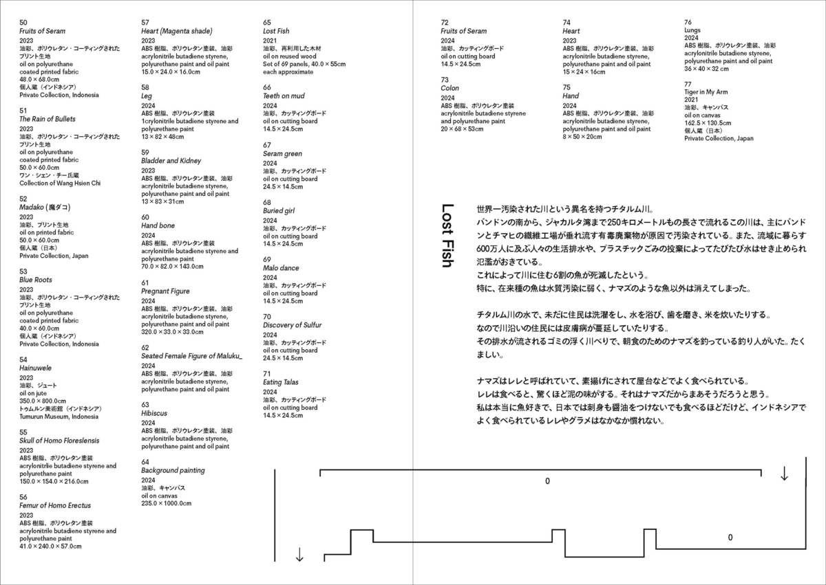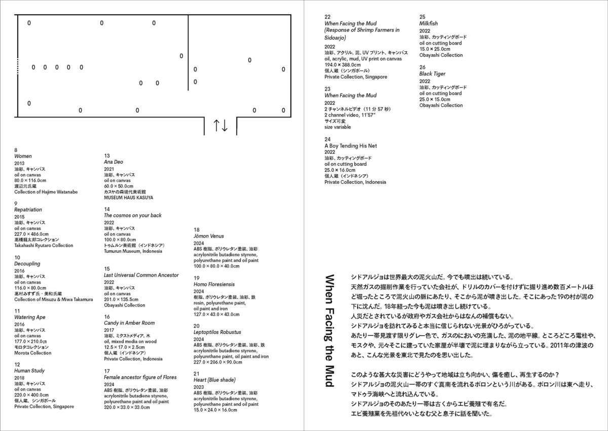 艺术家今津景(1980-)生于日本,现在于印度尼西亚生活、创作。她因有在两片土地上的生活经验,所以对自身生存的地方产生了很多思考。她的首次大规模个展就围绕着这个主题展开。今津景通过网络和数字档案等媒介下载图像,经过电脑软件加工,剪裁之后,再将这些处理后的图像作为底稿在画布上以油画的方式创作。艺术家今津从2017年移居到印度尼西亚万隆,开始在此生活、创作。近年来开始以印度尼西亚都市开发和环境污染等现实问题作为研究题材进行创作。这些现实问题,是画家在印度尼西亚的生活中真实感受到的。同时,今津并未止步于当下正在发生的问题,而是通过将各种档案影像在画面中与印度尼西亚的历史与神话、生物的进化与灭绝等生态系统等多个时间轴重叠,从而将作品发展为更具普遍性的表达。她把地球环境问题/生态女性主义、神话、历史、政治等要素融合到同一平面上、庞大的图像和信息在艺术家的脑海中过滤、整理,最终呈现出这种戏剧性的画面。今津这些年来备受国内外关注,这次是她首次在日本举办的大规模个展。展览标题中的“Tanah”,“Air”在印度尼西亚语中分别代表“土”和“水”,而当两个单词合在一起的时候又意味着故乡的意思。今津的作品中展现出关于乡土的思考,涵盖了现在生活的土地——印度尼西亚以及自己的源头——日本。观赏今津的作品,也将激发出观者对自己生存的场所的所思、所想。